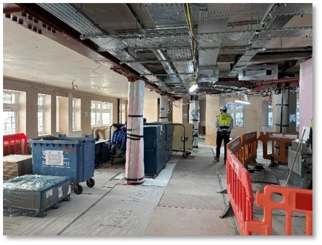 Safety and enabling works: Asbestos remains safely managed, with Level 4 materials encapsulated and basement services isolated. The UK Power Networks service head removal is scheduled to take place this week