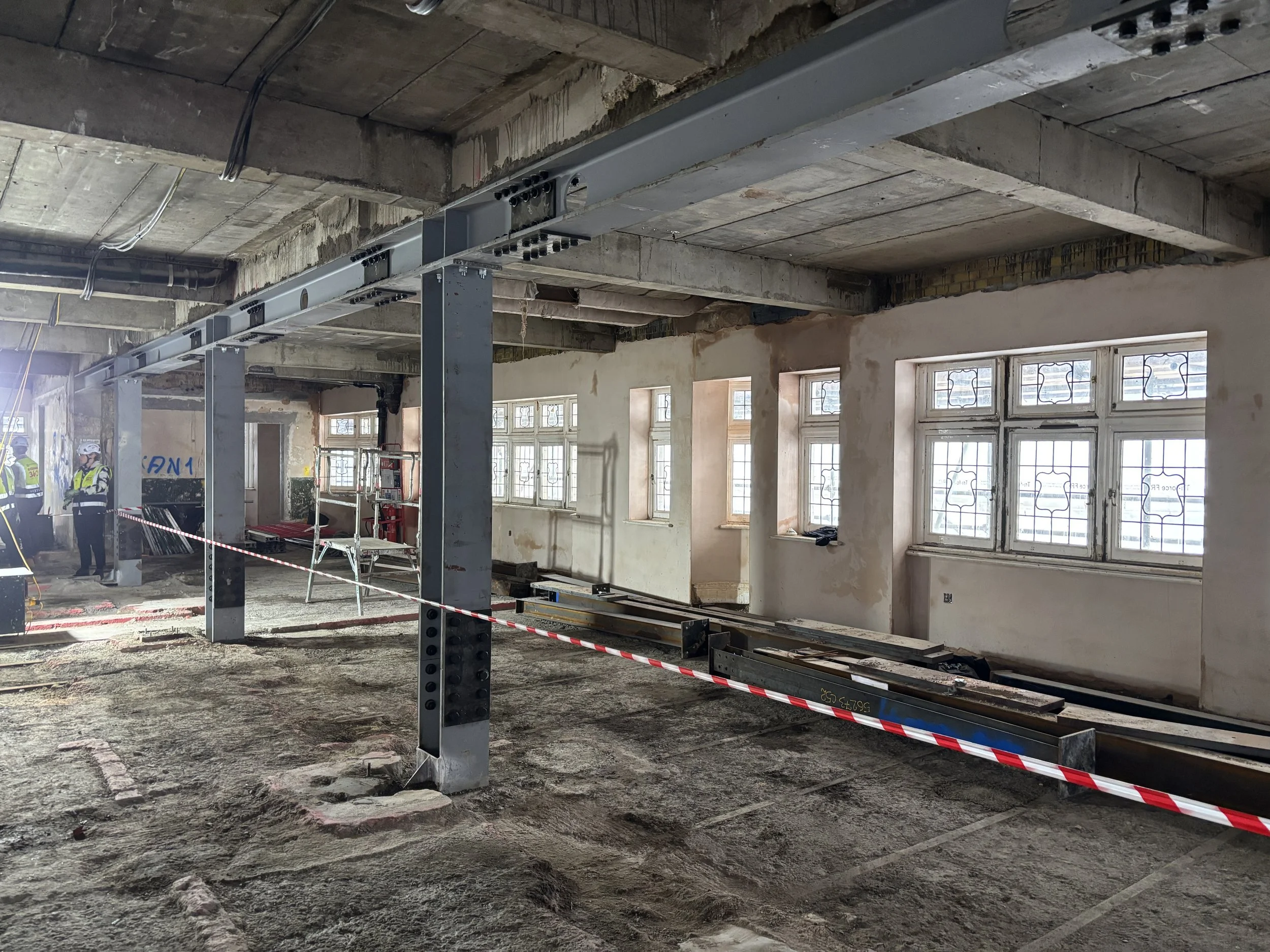 Demolition, steelwork and stability: Demolition to ground and basement areas is ongoing. Steelwork installation is progressing across Levels 1–4 and has now commenced in the ground and basement, following inspections to enable removal of temporary stability works.