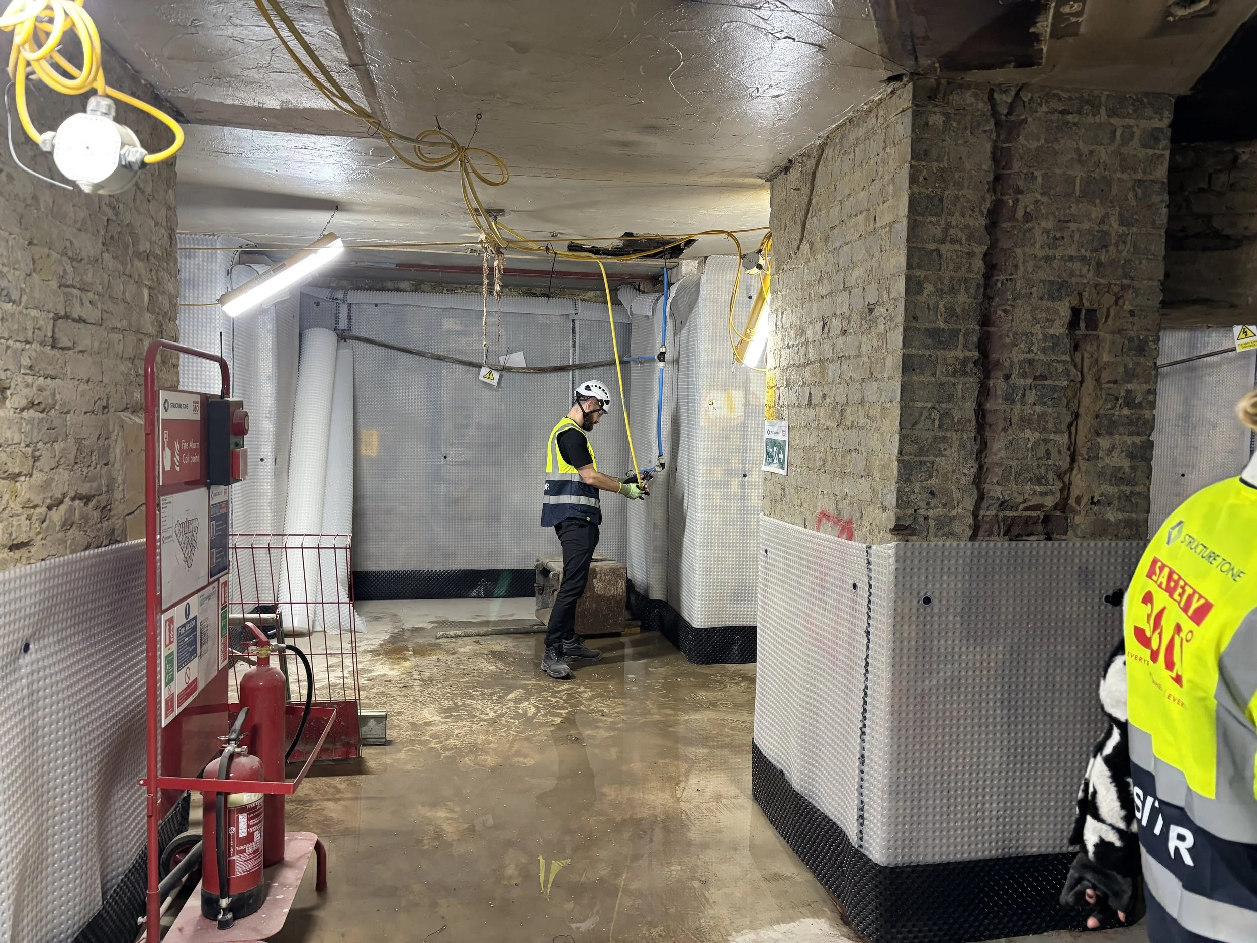 Below-ground drainage and basement: Drainage works are nearing completion, supported by manhole coordination, CCTV surveys and jet washing. Basement waterproofing and lift pit works are underway to maintain programme.